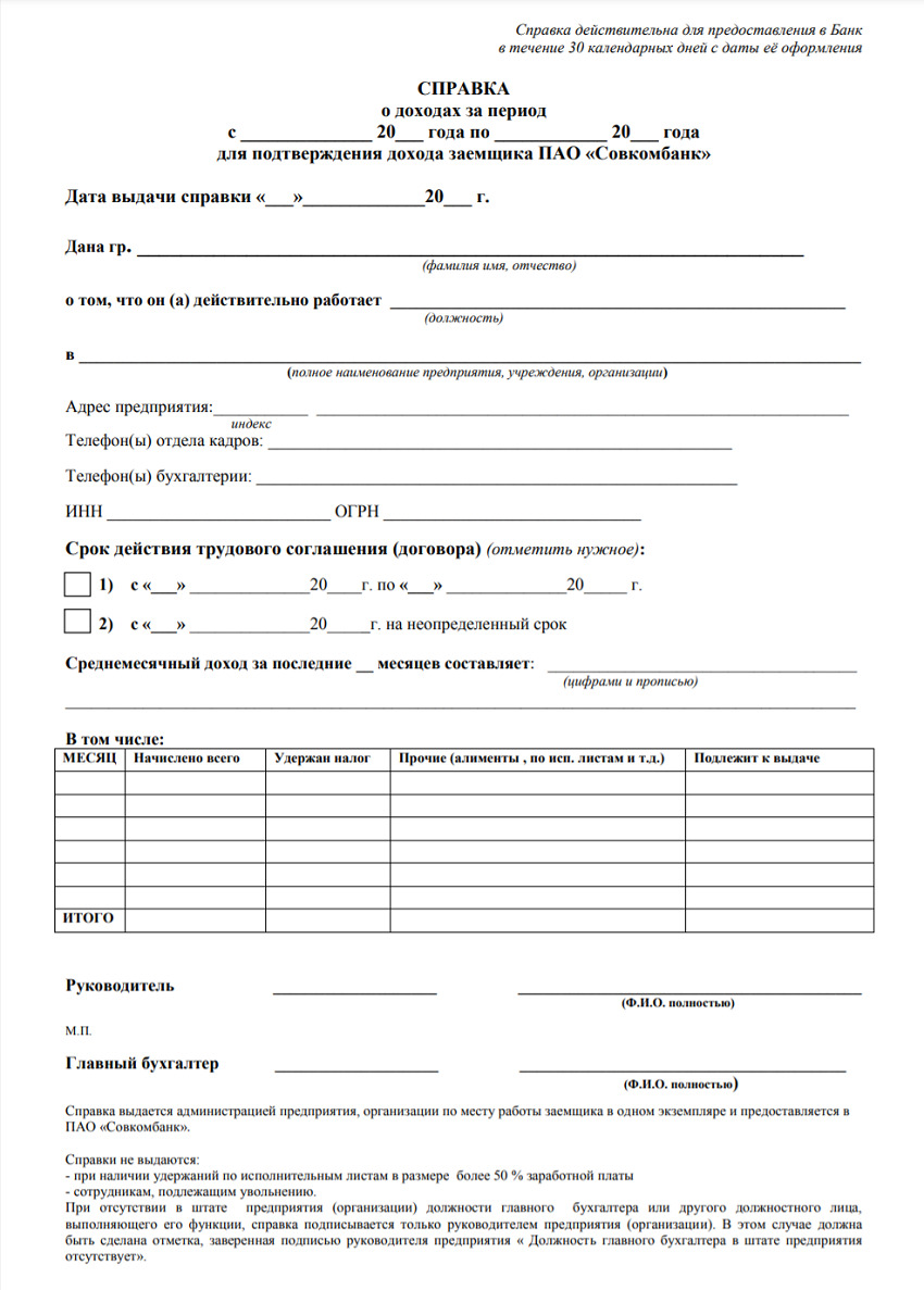 Для получения справки по форме банка для кредита потребуются: